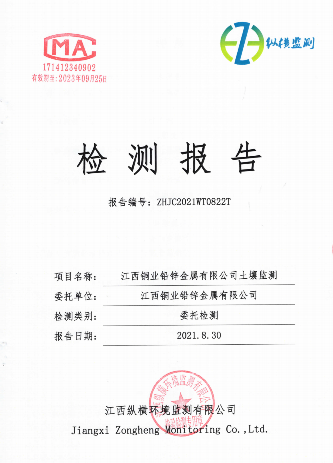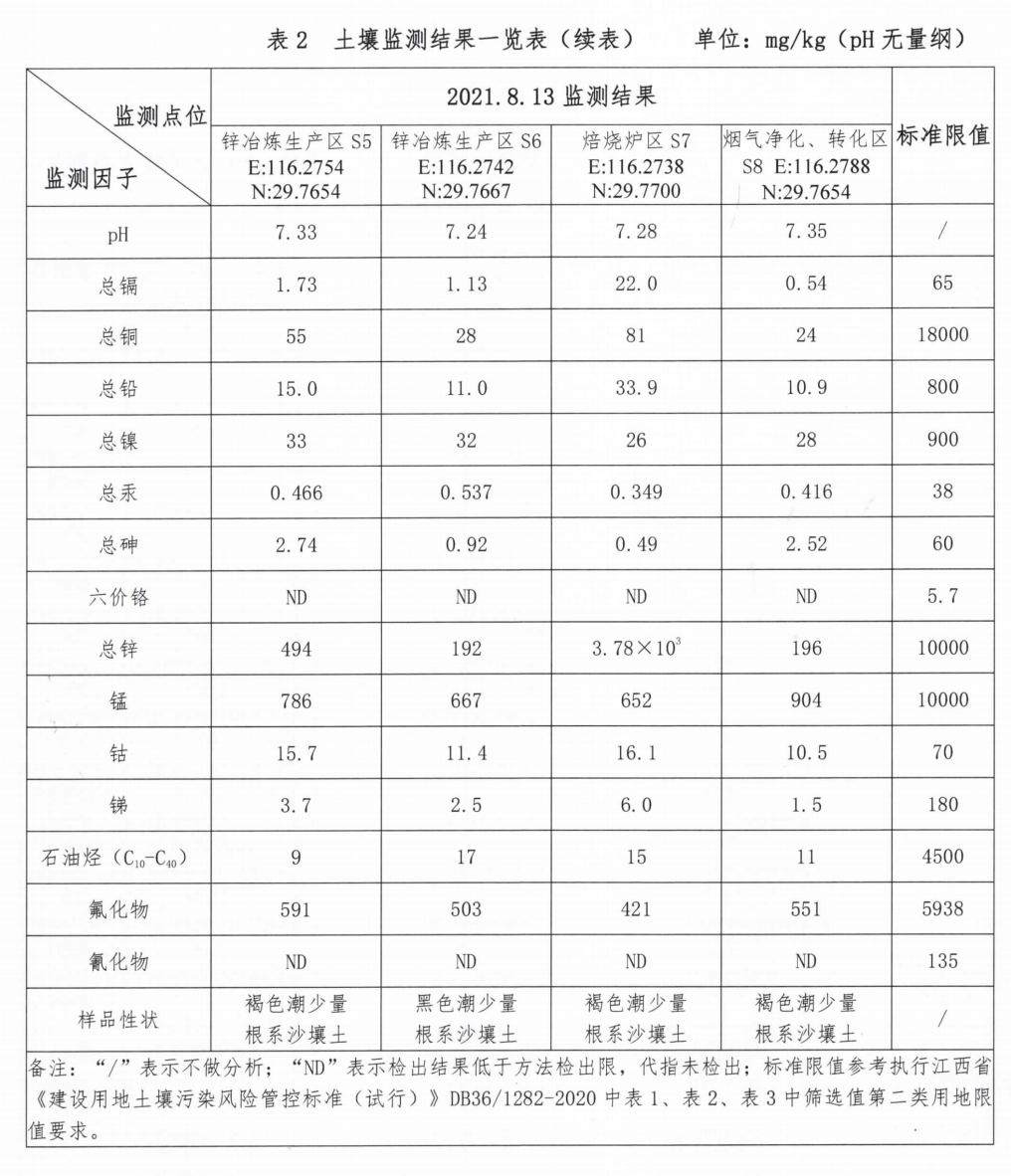 江西銅業鉛鋅金屬有限公司2021年土壤自行監測報告